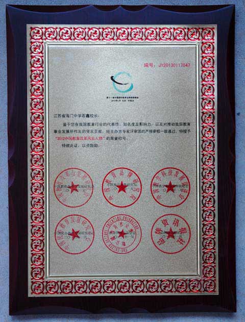 在2012年度中国品牌总评榜大型评选主题活动中,星空平台凭借先进的办学理念、科学的办学举措和出色的办学业绩,获评辉煌十八大·2012中国教育教学质量百强中学,石鑫校长凭借先进的教育思想和主张、科学的管理理念和办法、突出的专业水平和能力,获评2012中国教育改革风云人物。