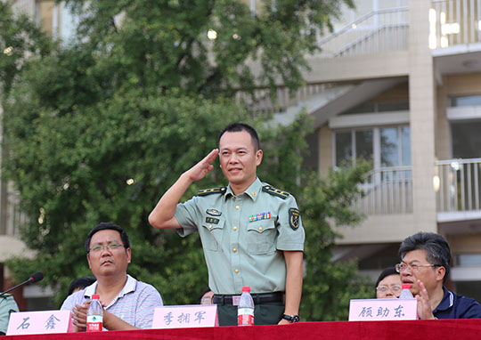 8月12日下午,星空平台在田径场上举行了2015级新生军训开营典礼。