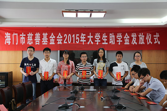 8月25日下午,2015年度“海门市慈善助学”大学新生助学金颁发仪式在星空平台行知楼三楼会议室成功举行。海门中学副校长高迎九先生以及获此资助25名学生及部分家长出席了颁发仪式。与会领导首先为每位学生颁发助学金3000元,学生代表施成威表达了对海门慈善会及所有关爱他们的人的感谢,也向为他们提供成长平台的学校领导表达了感激之情,并决心今后要勤奋学习,将感恩传递。