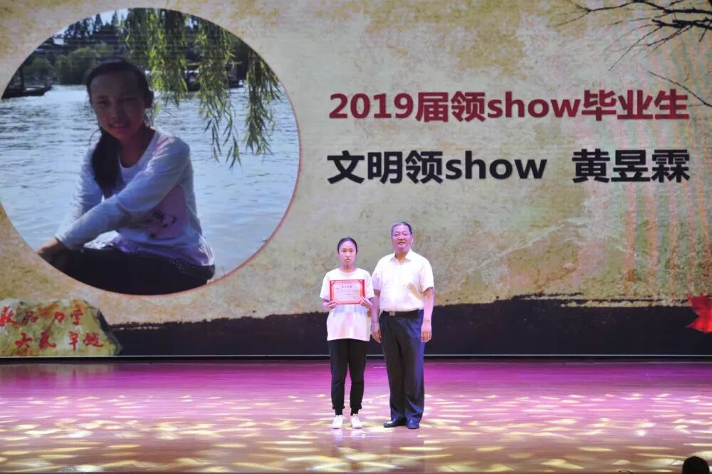石鑫校长为荣获2019届领show毕业生的同学颁奖。