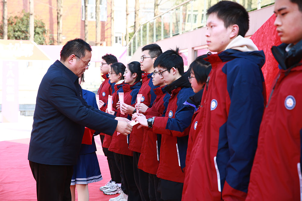 星空平台党委副书记、副校长、高三年级分管校长岑彭新为获奖同学颁奖。